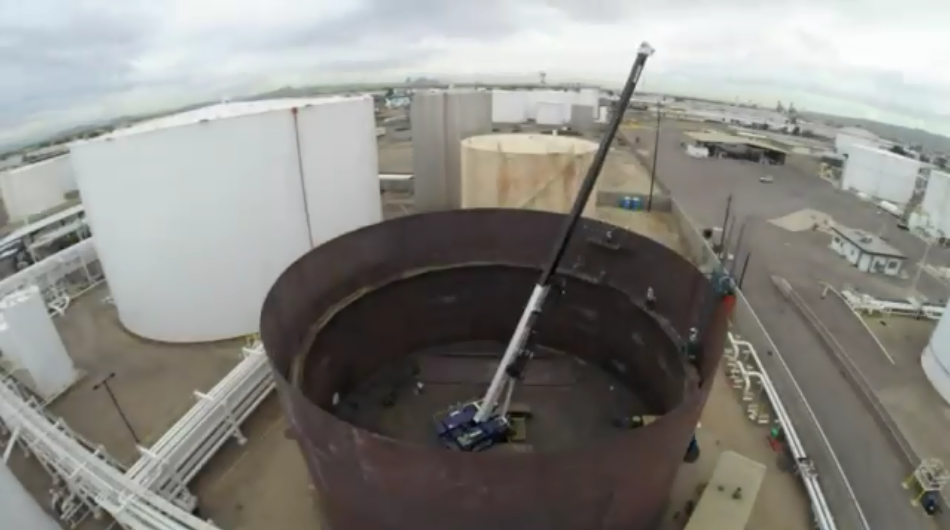 هذه الرافعة (الونش) Crane تساعد في أعمال الإنشاءات الخاصة بأحد خزانات البترول من داخل الخزان إلي أن يكتمل سقف الخزان ، والسؤال هو كيف لهذه الرافعة الخروج من الخزان بعد اكتمال بنائه ؟