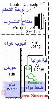 عند ملء الغسالة يضغط الماء تدريجيا علي الهواء المحتجز داخل القبة الهوائية Air Dome وبالتالي تؤثر تلك الزيادة في الضغط -والتي تتناسب طرديا مع منسوب الماء- علي غشاء مفتاح المنسوب وبالتالي يتم تغيير وضع المفتاح .