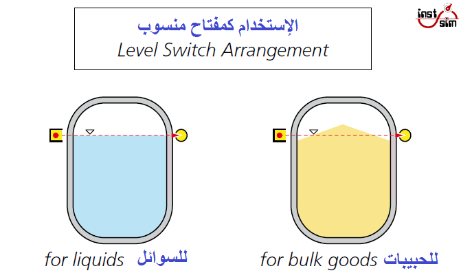 يمكن استخدامه كمفتاح للمنسوب Level Switch باستخدام مصدر نقطي Point Source وكاشف نقطي Point Detector وذلك لمراقبة المنسوب عند نقطة معينة بغض النظر عن محتوي الوعاء من حبيبات صلبة Bulk أو سائلة Liquid .