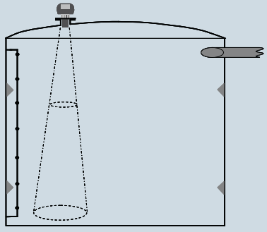 * بالنسبة للمواد الصلبة ، عمودي على زاوية ميل كومة المواد الصلبة . يعني هذا عادةً توجيه الحساس تجاه منفذ السحب الخاص بالصومعة (الشكل 2).