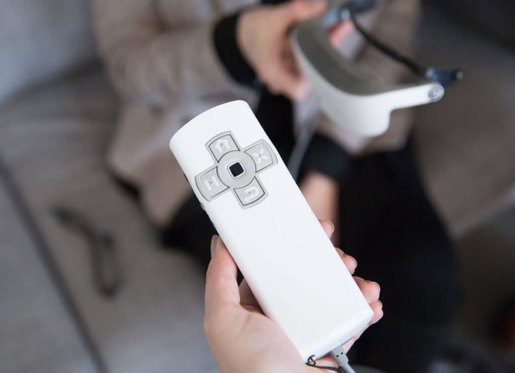 شكل رقم (6) : جهاز التحكم متصل بالنظارة eSight 3