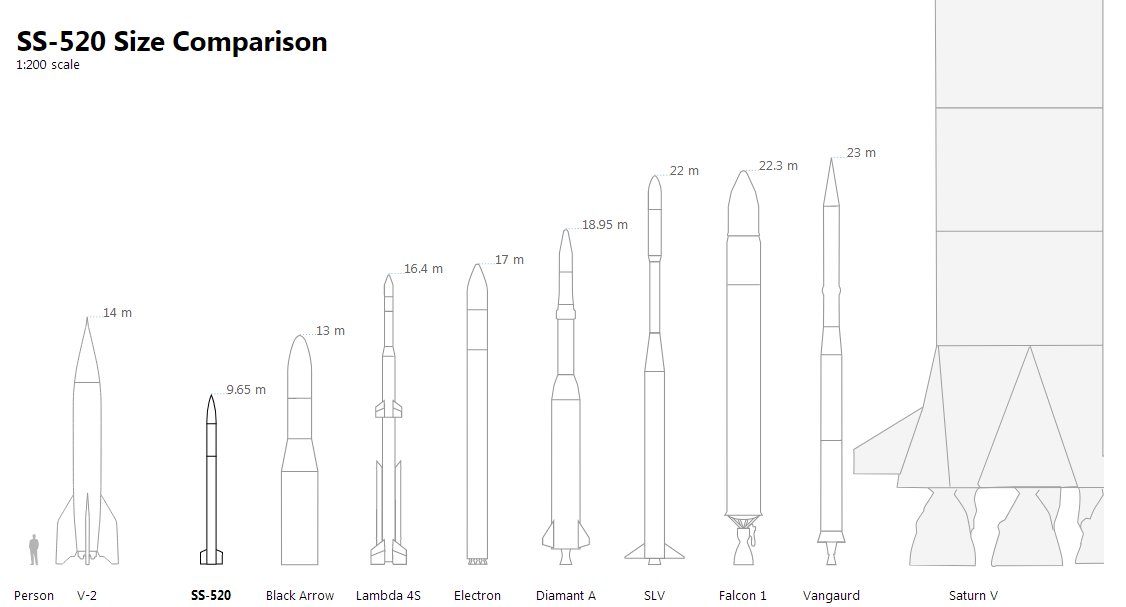مقارنة تبين حجم الصاروخ الياباني SS-520
