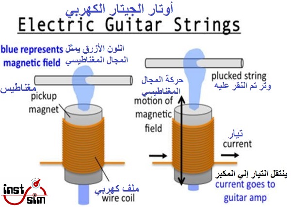 لتقريب فكرة عمل حساس السلك المهتز سنتناول بشرح مبسط أحد التطبيقات وهو استخدامه في الجيتار الكهربي .
