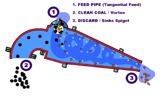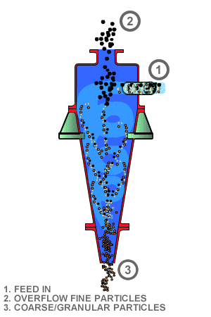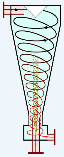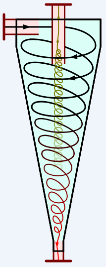 يعمل وفق مبدأ يشبه فكرة قوة الطرد المركزية إلا أن الجهاز يكون ثابت غير متحرك بينما يتحرك فقط المائع المار عبره .