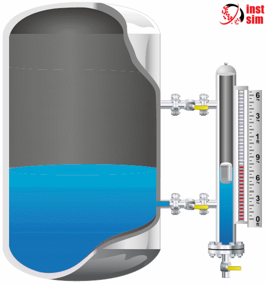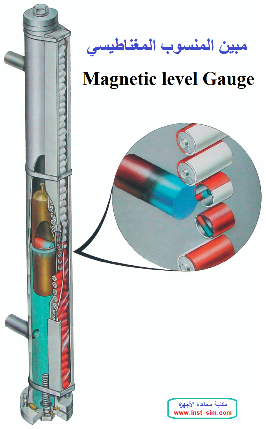 شكل رقم (4) : فكرة عمل المبين المغناطيسي للمنسوب Magnetic Level Gauge ( حجم كبير Large Size )