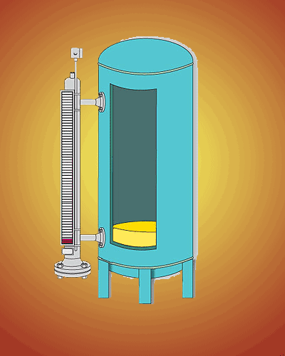 شكل رقم (1) : فكرة عمل المبين المغناطيسي للمنسوب Magnetic Level Gauge ( حجم كبير Large Size )