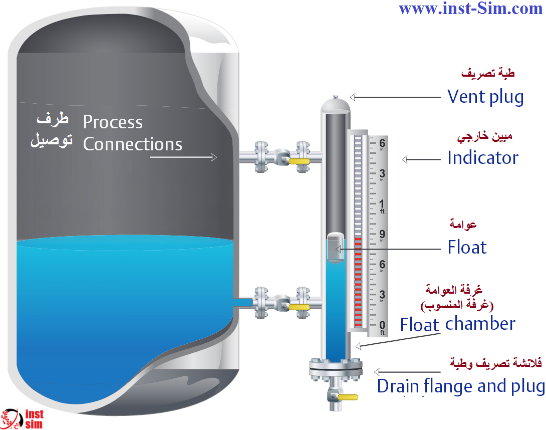 شكل رقم (3) : مكونات المبين المغناطيسي للمنسوب Magnetic Level Gauge