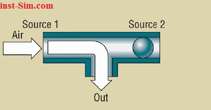 محاكاة المتحركة التي تشرح فكرة عمل صمام المكوك Shuttle Valve