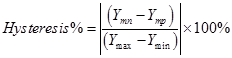 خطأ التخلفية Hysteresis Error هو قياس الفرق في قيمة الخرج Y الناتجة من حساس في اتجاهي الذهاب التزايدي والإياب التناقصي في اتجاه الرجوع إلي الصفر .