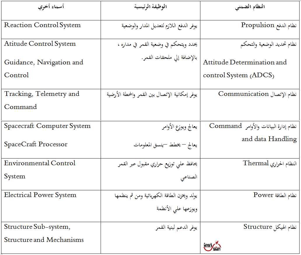 دورة تدريبية-الجزء الأول : الأنظمة الفرعية للقمر الصناعي أو مركبة فضائية