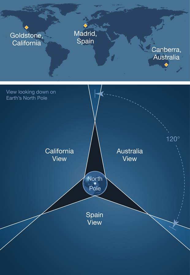 مواقع محطات شبكة الفضاء العميق Deep Space Network stations – الصورة ناسا .